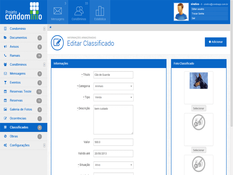 O condômino pode criar os seus próprios classificados no CondoApp, o seu site para condomínio.